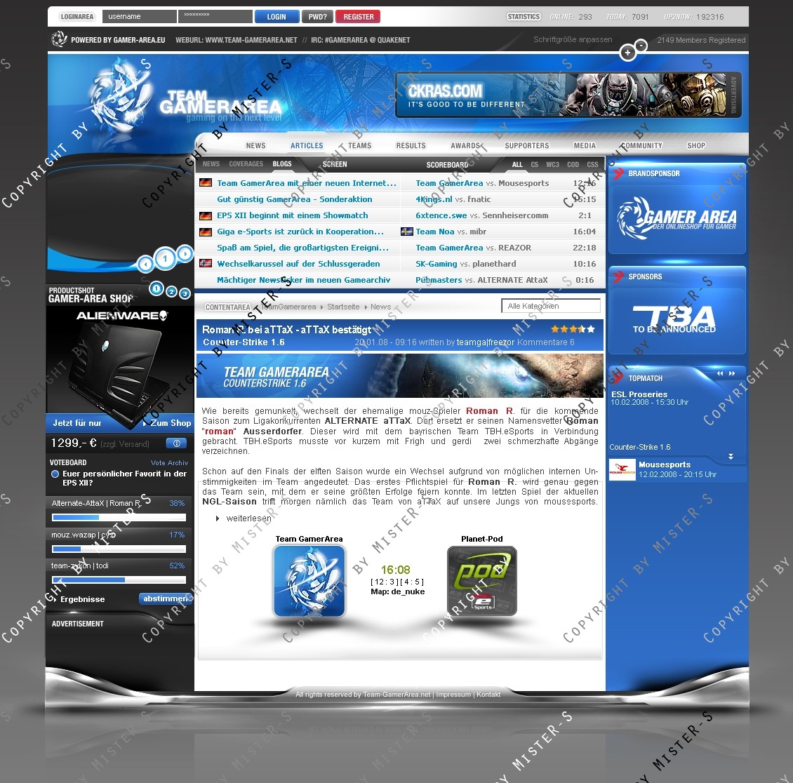 Newspics, Squadpics und Playerrahmen, sowie Logo und Esl Logo können ebenfalls erworben werden.