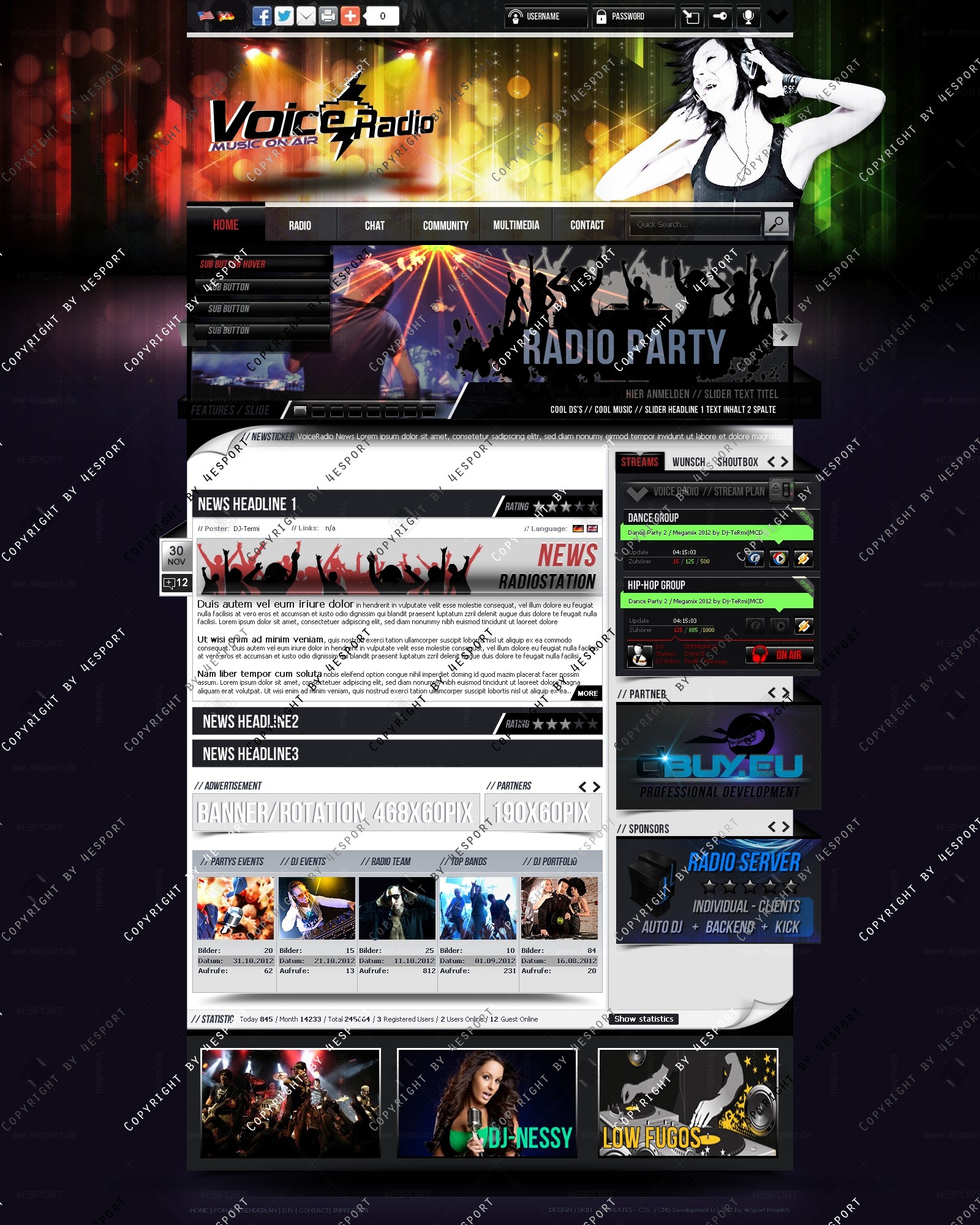 - Grafik Vorlagen je eine, in (PSD) für News Banner / DJ Teams (1x kein –1x großer Banner) 5x-Link-AS Banner.
