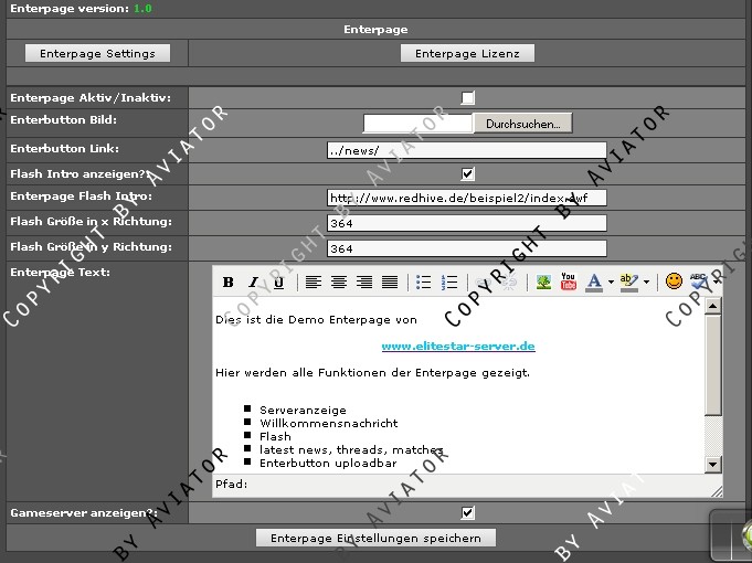 - Enterpage abschaltbar übers Adminmenü!!!!