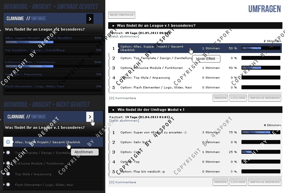 Hier erhalten Sie für ihre Clanhomepage ein Professionelle Poll/Umfrage Modul Erweiterung.